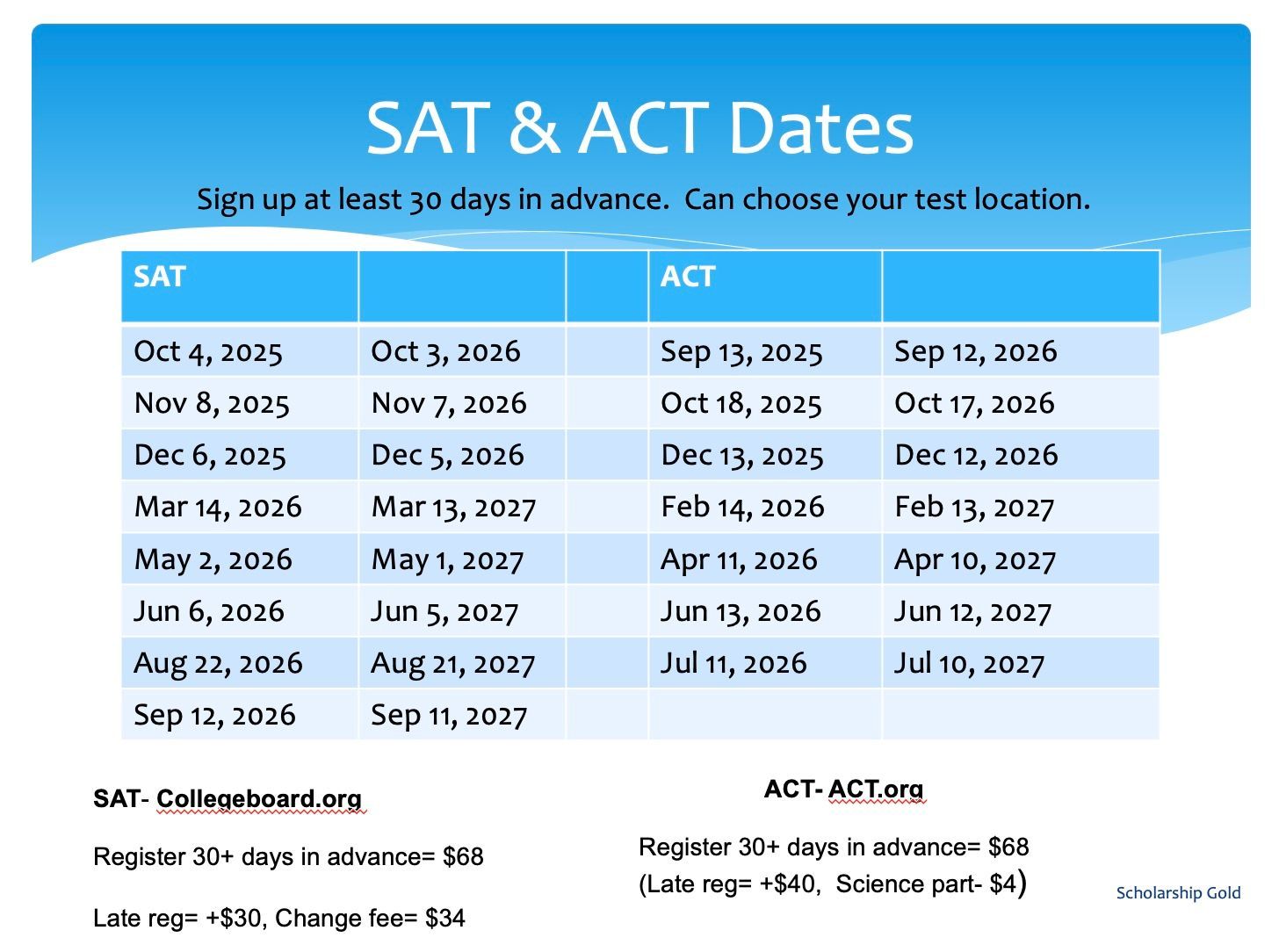 SAT & ACT Dates Fall 2025 – Summer 2027